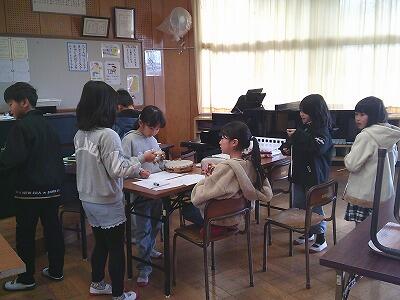 3年生の音楽の授業では、発表に向けて、グループで演奏の仕方を話し合っていました。どのグループも、互いに考えを伝え合う姿が見られました。楽器を鳴らすタイミングなどを変えながら、グループで力を合わせたよい演奏になることでしょう。