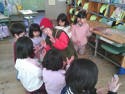 今日は、いよいよ学習の成果発表の日です。1年生に紙芝居風にして発表しました。地域の方から教えていただいた方言で、イントネーションも完璧に、発表できました。紙芝居と言っても、絵の裏にお話はなく、全て暗記していて、驚かされました。発表後は、1年生の「楽しかった」「みんなおぼえて言っていてすごかった」などの感想に、照れながらもとても嬉しそうで達成感も伝わってきました。