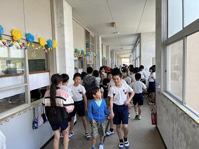 飯野小学校は、静かに並んで教室移動ができます。6・5年生の歩き方が手本になっています。今日も静かに教室移動をしている1年生と2年生を見ることができました。