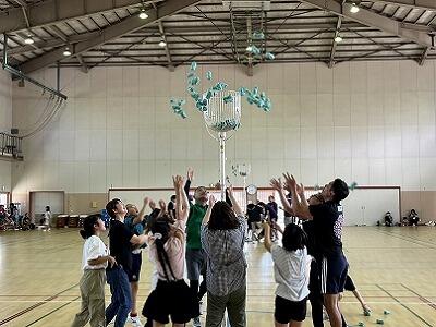 今年のPTAレクリエーションは、なんと、スポーツ玉入れ「 アジャタ」でした。子どもと保護者、そして教職員が一緒に楽しめるレクリエーションとして、役員の皆様が、話し合ってチャレンジしてくださいました。1学年から6学年まで、学年や学級単位のチームで出場しました。練習も本番も、大人も子どもも十分に楽しんでいて、最後の玉が入ると、どのチームもガッツポーズと拍手で喜び合っていました。とても楽しい時間になりました。役員の皆様、そして参加いただいた皆様、ありがとうございました。