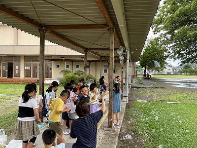 今日もいろいろな学習活動に取り組んでいます。1年生のシャボン玉や水鉄砲で的当て、5年生の手縫いにチャレンジ、6年生の創作活動などの場面を見ることができました。子どもたちが、集中して取り組んでいます。
