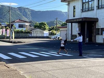 子どもたちの登校を地域の方が交替で見守ってくださいます。学校の周りの道路の交通量が多く、横断歩道を渡る場所も多いのですが、継続して見守りと声かけをしていただくおかげで、子どもたちは安全に横断歩道を渡ることができています。また。あいさつや「よく来たね。」「いってらっしゃい。」など、声をかけていただくので、子どもたちもうれしそうに返事をしています。地域で子どもたちを育んでいただいていることにいつも感謝の気持ちでいっぱいです。