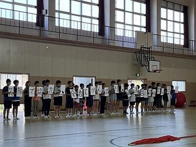 全校朝会では、8・9月の生活目標「しっかりと食事をとり、じょうぶな体をつくろう」について、給食主任作成の物語の読み聞かせがありました。「くたくたうさぎ」から「もりもりうさぎ」になるための食事のポイントについて、ご家庭で子どもたちに聞いてみてください。また、地震の発生に備えて、防災教育と安全教育の担当者が、学校と登下校中の地震の対応について、画像を使いながら確認をしました。ご家庭でも、地震等の災害時の対応についてぜひお話しください。