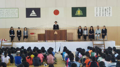 全校集会では冬休みの過ごし方など安全に気をつけて過ごすよう