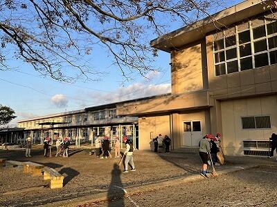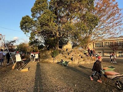 冷え込んだ朝、たくさんの落ち葉を5・6年生が掃いて運んでくれます。お陰で持久走のコースが走りやすいです。