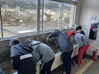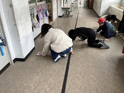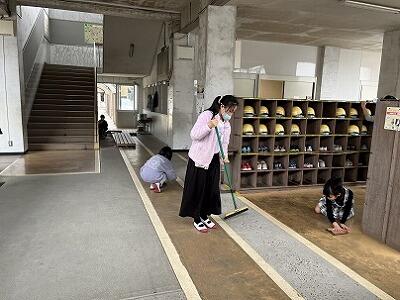 卒業・進級を前に学校をきれいにしようと、いつも以上に隅々までそうじをしています。この重点そうじ期間は、5年生が縦割り清掃班のリーダーとなって、指示を出しています。5年生が無言で自ら進んでそうじをするため、班員もよく動いています。どの清掃場所も、静かに黙々と清掃をしていて感心します。大切な学校をきれいにしようという子どもたちの気持ちが伝わってきます。