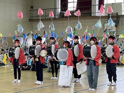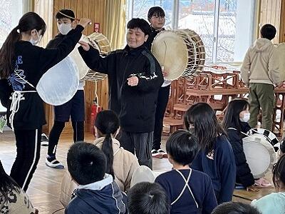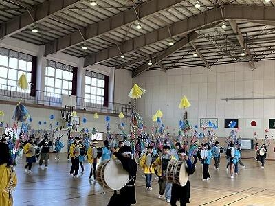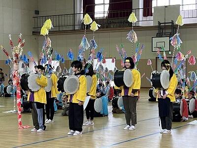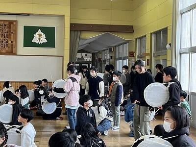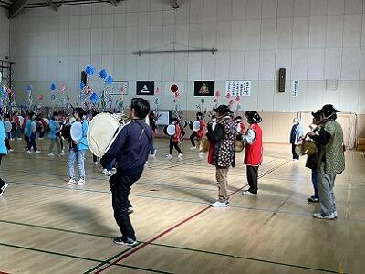 6年生は、2月の参観日に麓輪太鼓躍りの発表会をします。それに向けて、演目の全てと隊形移動を通した練習になってきました。かなり激しい動きですが、集中して取り組んでいます。保存会の方も、毎週2日間、子どもたちのために指導に来てくださっています。