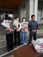 また、卒業生にたくさんの花が届けられました。JAの生産者の方よりラナンキュラスの花束が、まちづくり協議会より鉢植えのラナンキュラスが、全員にお祝いとして贈られました。ありがとうございます。