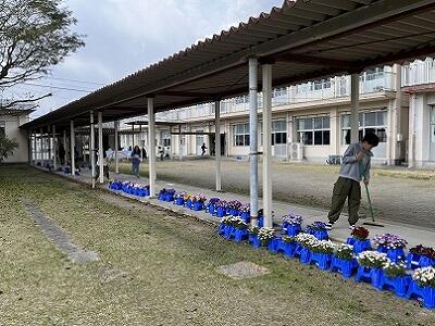 卒業式会場も、これまで1~5年生が大切に育ててきた花と、地域の方が寄贈していただいた花で飾られます。みんなからの感謝とお祝いの気持ちがいっぱいつまった会場になります。