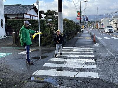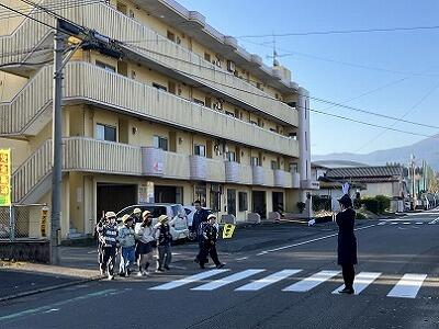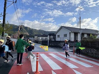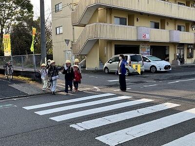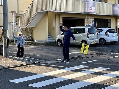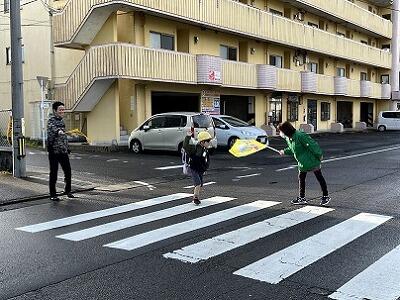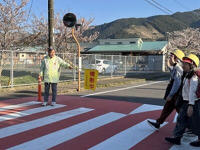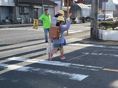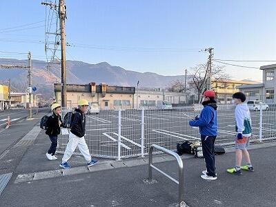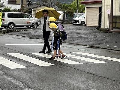 山に雪が積もる朝でも、雨の日でも、いろいろな場所で子どもたちの登校を見守っていただいています。子どもたちは、ボランティアの方々からの声かけで元気をもらうようで、とてもよい表情です。