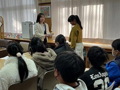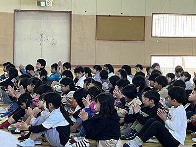 卒業を前に、読み聞かせグループ「ひよこ」の皆様が、6年の学級ごとに、おはなし会をしてくださいました。絵本クイズや紙芝居、大型絵本、パネルシアターなど多彩な内容に、6年生も読み聞かせの方も一緒に盛り上がりました。会場は、菜の花やユキヤナギなどの春の花や絵本で飾られており、特別な空間でした。6年生は暖かなカーペットに座って、特別な時間を過ごし、とてもよい表情でした。読み聞かせ「ひよこ」の皆様、ありがとうございました。