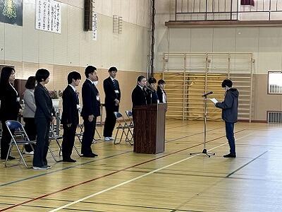 卒業式の練習が、4年生5年生6年生合同で行われました。6年生の落ち着いた態度や全員の気持ちが揃った礼を手本にして、4年生5年生も在校生代表としての意識を高めています。今日の練習では、特に4年生5年生が、6年生にとって心に残る式にしようという気持ちで臨んでいることが、態度や歌から伝わってきました。とても嬉しかったです。