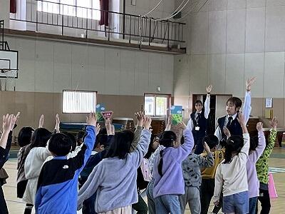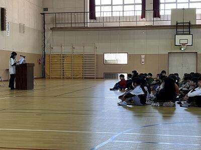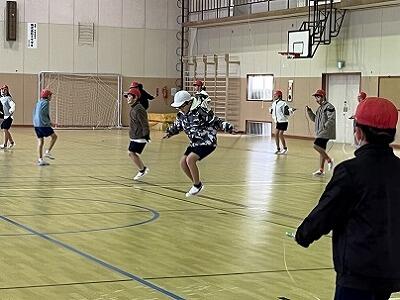 2月の全校集会をしました。2月の月目標「進んで体をきたえよう」について、体育委員会の子どもたちが、企画と提案をしてくれました。いろいろな跳び方と回数にチャレンジしていく個人の部と、長縄跳びの回数を更新していく学級の部の2つの企画がありました。寒い時期でも、短縄跳びと長縄跳びで、体を鍛えられそうです。