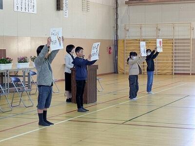 特に、実行委員(5年生)が準備・企画した「お別れ集会」では、「じゃんけん列車」「飯野小学校4択クイズ」「大縄大会」で盛り上がりました。どの種目も、日頃清掃を行う時の縦割り班(1~6年生の混合班)で行われました。顔見知りのメンバーなので、6年生がリーダーとなってサポートしたり、互いに声を掛け合ったりする微笑ましい場面がたくさん見られました。4択クイズもとても工夫された問題で、職員も必死に考えていました。とても楽しい集会を準備してくれた5年生に感謝です。