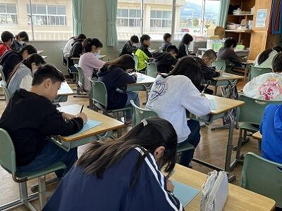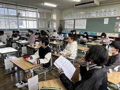 明日の参観日に学習の成果を発表しようと、どの学級も調べたことをまとめたり、練習をしたりしています。見ていると4月からの1年間で、できることや成長したことがたくさんあることに気づきます。また、6年生は音楽の時間に卒業式で歌う曲を練習していました。卒業式・修了式まで残り20日程の登校日です。できるようになったことを確認し、互いに認め合って、進級・進学へのエネルギーにできるといいです。