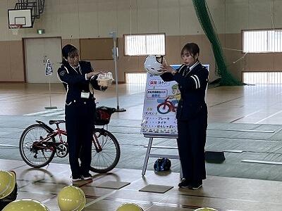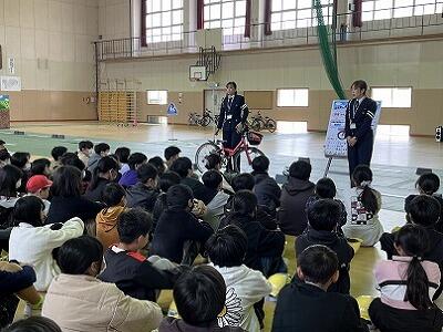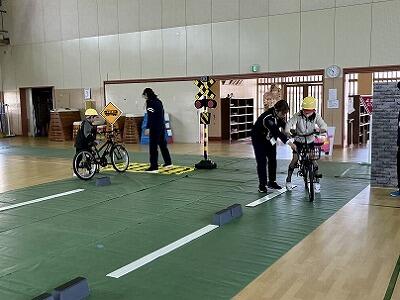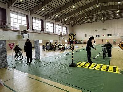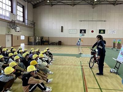 昨日、3・4・5・6年生が、交通安全について学習しました。3年生以上は、自転車の乗り方やルール等について知るとともに、実際に自転車に乗って、発進時、見通しの悪い曲がり角、信号機のある横断歩道、踏切等における安全な走行を体験します。3年生は、ヘルメット着用によって頭が守られることを、豆腐を使った実験で分かりやすく見せていただきました。子どもたちは、交通安全協会の指導員と警察署員の方の指導を、真剣に聞いて活動しました。これから、今日の学びを活かして、いのちを守る行動を続けていってほしいです。