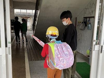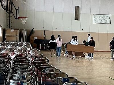 6年生は、登校後に1年生のお世話をしています。様子を見守りながら、必要な場面で優しく手伝っています。「1年生のお世話があるので!」と笑顔で登校する様子から、1年生の役に立っている喜びを感じます。また、今日は、会場の準備もしてくれました。状況を見て考えて動く姿が頼もしいです。6年生、いつもありがとう!