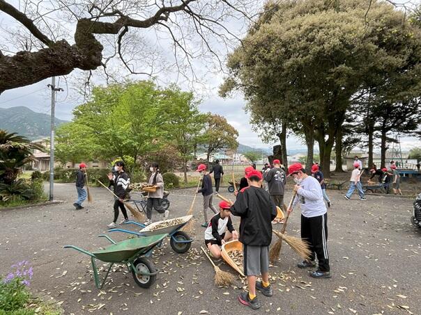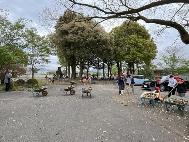 この時期、ゆとりの森の木々が、毎日大量に葉を落とします。6年生と5年生は毎朝、ボランティア活動で掃いてくれます。集めた落ち葉は一輪車に山積みにして数回運んでくれています。おかげで、駐車場やゆとりの森がきれいです。6年生は、1年生の朝の片づけの手伝いと落ち葉掃きに分かれて、それぞれの場所で大活躍です。ありがとう。