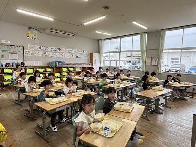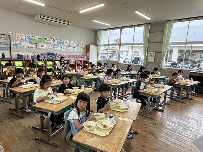 今日の給食は「えびのふるさと給食」でした。えびの市の給食はご飯(パンは月に1回程度)です。しかも、人気のえびの産ヒノヒカリを使用しており、とってもおいしいです。給食の時間の様子を見ると、子どもたちが食べることに集中していました。