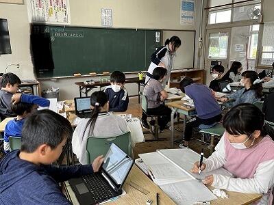 とても寒い朝です。生活委員会の子どもたちは、5月から続けているあいさつ運動の日にあいさつがよかった人を紹介する取組を始めました。あいさつをよくするために、生活委員会で話し合って決めたそうです。また、2年生の授業では、国語の読み取りをしていました。班によって「ロボットができること」について読み取ったことが違うため、根拠について意見を出し合っていました。6年生はロイロノートを使って調べたことを発表するためにまとめていました。理科では水溶液の性質について実験をしていました。1時間目から、子どもたちが自分の考えをもち、表現しています。