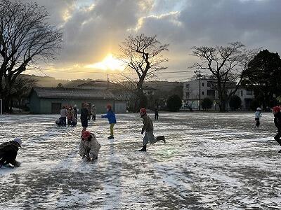 昨日から多くの子どもたちが「雪が積もりますように」と願っていました。その願いが通じたかのように、今朝は、校庭にも雪が積もりました。登校後、運動場では、子どもたちが雪遊びを大いに楽しみました。