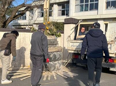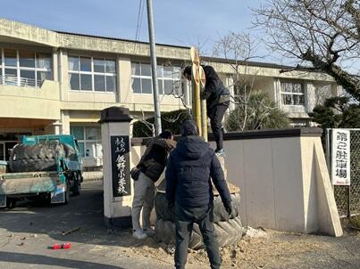 新年を迎えるにあたり、飯野小学校の4つの校門に飾られた門松。門松に囲まれた飯野小学校には、多くの福の神が集われたのでしょう、とても穏やかな新年を迎えることができました。昨日、やまびこ会の皆様が門松の片づけまでしてくださいました。よい年が迎えられて、皆、笑顔で語りながらの作業でした。やまびこ会の皆様、ありがとうございました。