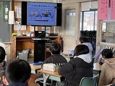 給食感謝集会をしました。感染防止のためオンラインによる実施となり、給食委員会の代表児童による発表となってしまいました。給食委員会の子どもたちは、学校給食に係る話を画像とともに分かりやすくしてくれました。その後、栄養教諭の先生より学校給食の数や職員数、作り方などを動画を交えながら説明していただきました。最後に、全校児童が書いた手紙を、栄養教諭の先生に渡して感謝の気持ちを伝えました。子どもたちが楽しみにしている給食について、初めて知ったこともたくさんあったようです。