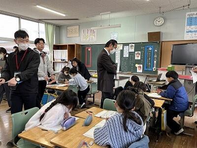 卒業・修了の日が近づいてきました。どの学年もどの授業でも、人を大切にする子、自分の考えをもつ子、自分を表現する子、チャレンジする子が見られます。2年生の学級会(話合い活動)は、以前は、司会者や記録者の横にいてサポートをしていた担任が、教室の後ろにいました。1年間の積み重ねで、子どもたちが主体的に会を進められるようになっていました。6年生の音楽では、卒業式の歌を練習していました。これまでの恥ずかしさや周囲を気にする雰囲気が一変し、皆が思いを一つに、一人一人が精一杯歌っていました。在校生や保護者の方に、歌声とともに6年生の思いが必ず届くと思います。また、麓輪太鼓踊りを、6年生が5年生に教える学習の1時間目が行われました。今回は、輪太鼓の付け方を教えていました。6年生が5年生に、1対1で教えるので、5年生ができるようになるのも早いです。「教えるのって難しいですね。」という6年生の声も聞かれました。できるだけ5年生にさせてみて、困ったときにサポートする6年生の姿も見られました。試行錯誤でチャレンジしている麓輪太鼓踊りの校内伝承ですが、異学年交流での学びがたくさんあることに気付かされます。