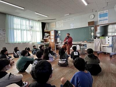「地域に学び地域に貢献する」をスローガンに、地域貢献活動をしている飯野高校生が、毎週水曜日に本校に来てくれます。昼休みは子どもたちとたくさん触れ合い、その後は環境整備や活動のサポートをしてくれます。子どもたちにとって、身近で頼りになる存在です。職員の助けとなるとともに将来は学校職員としての活躍も期待される楽しみな存在です。