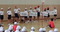 運動会の結団式を行いました。全校児童が体育館に集まり、体育委員会の進行で行いました。