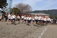 寒空の下、2校時に高学年(5,6年)、3校時に中学年(3,4年)、4校時に低学年(1,2年)が走りました。