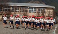 寒空の下、2校時に高学年(5,6年)、3校時に中学年(3,4年)、4校時に低学年(1,2年)が走りました。