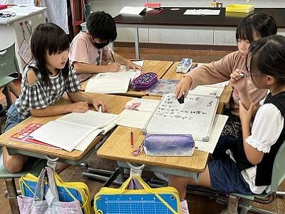 また、授業では「4つの子~人を大切にする子・自分の考えをもつ子・自分を表現する子・チャレンジする子」がたくさん見られました。自分の考えをグループの仲間に伝え合い、グループの考えをまとめていました。このような姿をみるとうれしくなります。