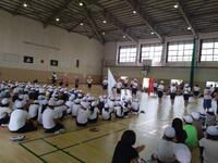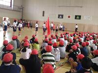 運動会の結団式を行いました。全校児童が体育館に集まり、体育委員会の進行で行いました。