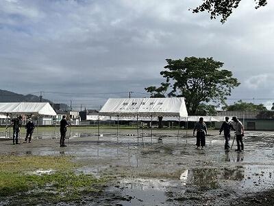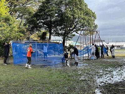 運動会前日準備に、やまびこ会の方々と保護者の方々が駆けつけてくださいました。朝の雷雨が上がり、5・6年生も外の準備に合流できました。万国旗は明日の朝にすることとして、あとの準備が整いました。小学校最後の運動会となる6年生が、保護者の方にお礼を伝えることもできました。明日の運動会の無事をお願いして、心も整えて臨むことができます。ご協力いただき本当にありがとうございます。最高の運動会になります。