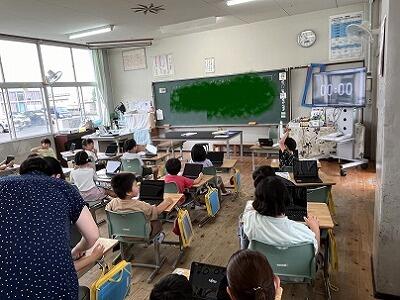 1年生がタブレットの活用にチャレンジしています。計画的に取り組んで、これからの学習に活用できるようになります。また、自分で想像した世界を表現したり、クラスメイトの考えを大切にしながら話し合ったりする姿が、授業で見られます。このような子どもたちが、4つ子(「人を大切にする子」「自分の考えをもつ子」「自分を表現する子」「チャレンジする子」)になれる授業を見る度に、うれしくなります。