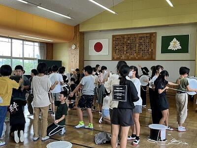 7月から始まる麓輪太鼓踊りの練習に向けて、輪太鼓を身に付ける練習が始まりました。自分たちで手早く付けられるように、練習を重ねていきます。