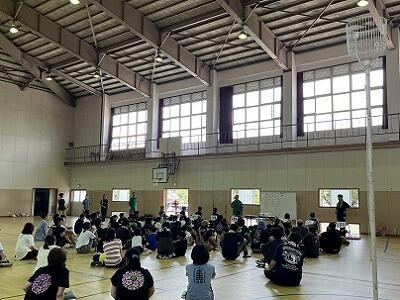 全校集会では、安全で楽しい休みにするための「きまり」について、生徒指導主事が話をしました。また、熱中症予防(こまめな水分補給・睡眠時間の確保)について、保健主事が話をしました。命を守る行動をして,8月21日の登校日には元気に登校して欲しいです。