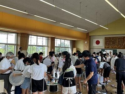 麓輪太鼓踊り保存会の皆様のご協力をいただいて、今年も輪太鼓の練習が始まりました。これから2月の発表会まで練習を重ねていきます。保存会の皆様に丁寧に教えていただきながら、輪太鼓を身につけて、太鼓の打ち方を覚えようと何度も練習しました。