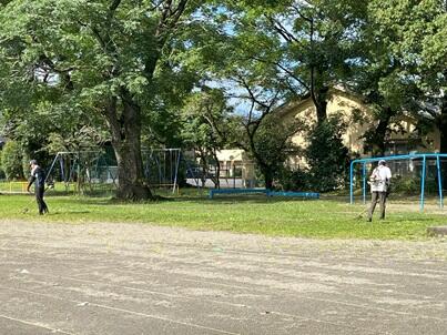 飯野小学校は「やまびこ会」の皆様によって、倒木、枝折れ落下、枯れ木、グラウンドの凸凹などの緊急対応や、PTA親子クリーン活動では対応できない環境整備等を行っていただいています。昨日は、利用していない花壇の撤去、枯れ木の伐採、積まれた枝草の撤去運搬等をしていただきました。暑い中でしたが、黙々と作業を進めてくださり、午前中で見違えるようにすっきりとした環境になりました。出入りの際に花壇に躓く心配もなくなりました。「やまびこ会」の皆様、本当にありがとうございました。