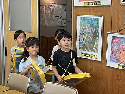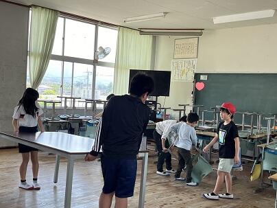 また、1年生が学校探検を、2年生は図工でテープやひもを使った活動に取り組みました。目を輝かせて、仲間と相談しながら活動していました。