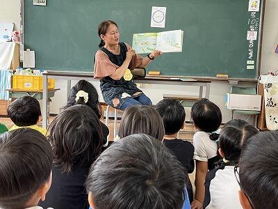 読み聞かせボランティア「ひよこ」の皆様が、6月は毎週月曜日に読み聞かせをしてくださっています。がんばって登校してきた子どもたちにとって、わくわくするごほうびの時間です。身を乗り出して聞き入っていました。