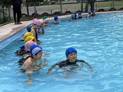 雨が上がり、1年生のプール開きがありました。命を守る約束を確認して、勇気を出してチャレンジしていました。