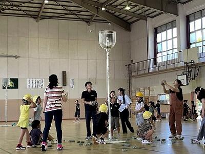 今年のPTAレクリエーションは、なんと、スポーツ玉入れ「 アジャタ」でした。子どもと保護者、そして教職員が一緒に楽しめるレクリエーションとして、役員の皆様が、話し合ってチャレンジしてくださいました。1学年から6学年まで、学年や学級単位のチームで出場しました。練習も本番も、大人も子どもも十分に楽しんでいて、最後の玉が入ると、どのチームもガッツポーズと拍手で喜び合っていました。とても楽しい時間になりました。役員の皆様、そして参加いただいた皆様、ありがとうございました。