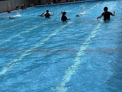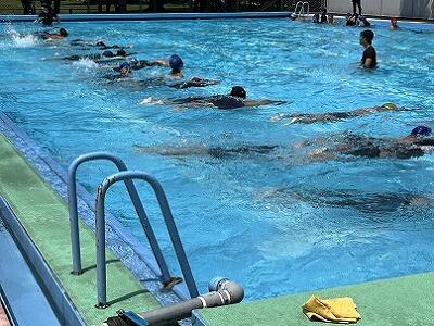 5年生の水泳記録会が行われました。クロールの距離計測コースとタイム記録コースのいずれかに、全員がチャレンジしました。「がんばれ」「もう少し」という大きな声援と初めて25メートルを泳ぎ切った子どもたちのガッツポーズがとても嬉しかったです。最後のリレーは、全員で盛り上がりました。