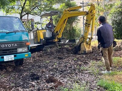 飯野小学校は「やまびこ会」の皆様によって、倒木、枝折れ落下、枯れ木、グラウンドの凸凹などの緊急対応や、PTA親子クリーン活動では対応できない環境整備等を行っていただいています。昨日は、利用していない花壇の撤去、枯れ木の伐採、積まれた枝草の撤去運搬等をしていただきました。暑い中でしたが、黙々と作業を進めてくださり、午前中で見違えるようにすっきりとした環境になりました。出入りの際に花壇に躓く心配もなくなりました。「やまびこ会」の皆様、本当にありがとうございました。