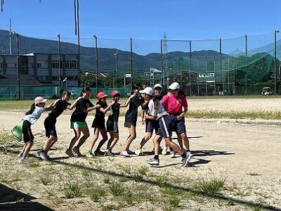 飯野高等学校と飯野中学校の陸上部に、速く走るこつを学ぶ「小中いいのっ高体力アップまつり」が行われました。足の使い方、手の振り方のトレーニング方法を教えてもらいました。初めは、緊張していた5・6年生(希望者)も、飯野高校の先生のリードと中高生のやさしい対応で、次第に楽しむ様子が見られました。