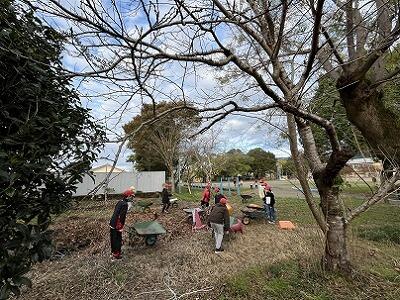 冷え込んだ朝、たくさんの落ち葉を5・6年生が掃いて運んでくれます。お陰で持久走のコースが走りやすいです。