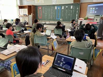 校内をまわると、いろいろな活動が行われていました。6年生はグループで協力して調理実習をしていました。3年生は国語で説明的文章をタブレットでまとめていました。2年生は校外でボランティアの方にサポートしていただきながら、町探検をしています。1年生は、幼稚園・保育所の年長児さんとの交流について、計画を立てたり準備をしたりしていました。年長児さんが楽しめるように、準備するものやルールなどについてよく考えて話し合ったり、丁寧におもちゃを作ったりする1年生の姿を頼もしく思いました。子どもたちは1日の学校生活でさまざまな体験や学びをしています。