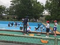 6月15日より、水泳、水遊びの学習が始まりました。プール開きでは、プールに行く前に安全面や学習の進め方についての説明を行い、命を守るためにルールを守ることや自分の目標に向かって取り組んでいくことを確認しました。その後、プールの中で、水慣れを主な内容とした授業を行いました。天候にも恵まれ、最高のプール開きとなりました。